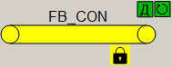 Графическое отображение ленточного конвейера. В зависимости от состояния конвейера используется цветовая индикация: