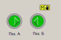 Графическое отображение дробилки с двумя двигателями. В зависимости от состояния двигателей используется цветовая индикация: