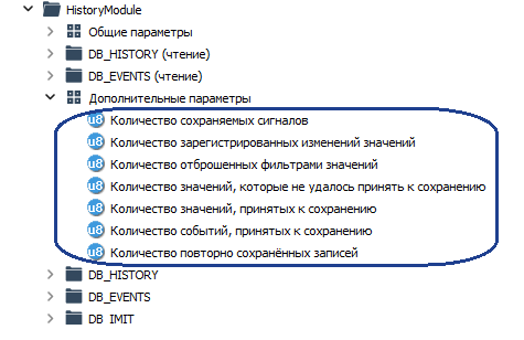 Для просмотра параметров статистики модуля подключитесь к Astra.Server приложением статистики и выберите в дереве модуль истории.
