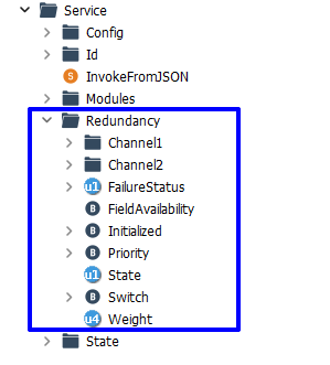Сервисные сигналы Подсистемы резервирования сгруппированы в папке Redundancy дерева сигналов Astra.Server. Сигналы используются для мониторинга Подсистемы резервирования и подачи команд управления серверами. Набор сервисных сигналов серверов резервной пары одинаков.