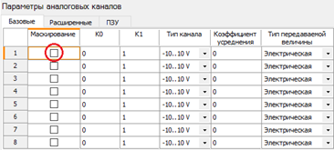 Для параметра CHX.MASK устанавливается значение FALSE/TRUE в зависимости от отсутствия/наличия галочки поля маскирования канала X на базовой вкладке редактора модуля в среде Astra.IDE. На рисунке ниже показаны поле настройки маскирования канала и пример установки значения: