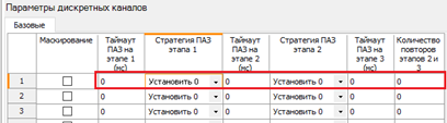 Для параметра CHX.ESDSTRATEGY устанавливается значение (0 - установить FALSE, 1 - не изменять или 2 - установить TRUE) в зависимости от выбранной схемы стратегии ПАЗ для канала X на базовой вкладке редактора. На рисунке ниже показаны поля настройки стратегии ПАЗ и пример установки значения: