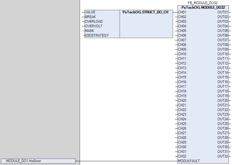 Функциональный блок MODULE_DO32 выполняет следующие функции.