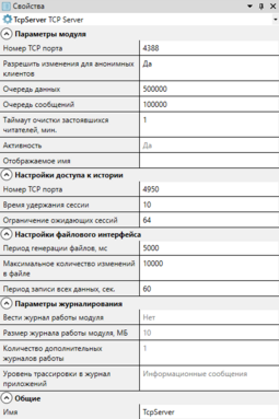 В очереди данных накапливаются изменения значений сигналов или сигнальных свойств для последующей отправки уведомлений клиентам. Параметр Очередь данных позволяет установить лимит на количество элементов в этой очереди.