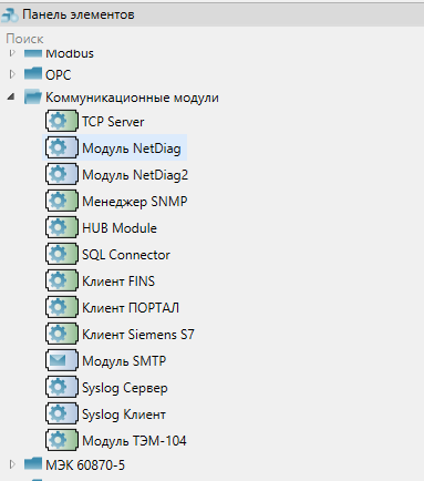 Для добавления в состав конфигурации, перетащите модуль в рабочую область из панели элементов конфигуратора Astra.AStudio.