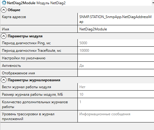 Карта адресов NetDiag, которая будет использована для данного адаптера