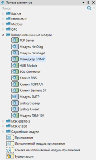 Для добавления в состав конфигурации, перетащите модуль в рабочую область из панели элементов конфигуратора Astra.AStudio.