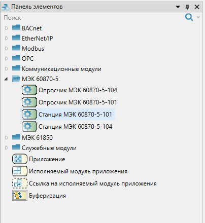 Для добавления в состав конфигурации, перетащите модуль в рабочую область из панели элементов конфигуратора Astra.AStudio.