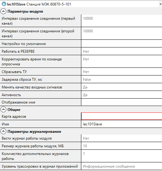 Карта адресов МЭК 60870-5, которая будет использована для данного адаптера