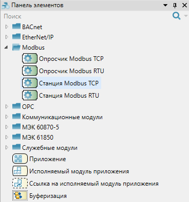 Для добавления в состав конфигурации, перетащите модуль в рабочую область из панели элементов конфигуратора Astra.AStudio.