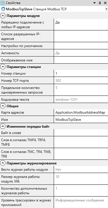 Карта адресов Modbus, которая будет использована для данного адаптера