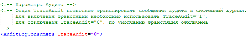 Откройте файл astra.security.agent.xml. Перейдите к элементу <AuditLogConsumers>. Включите трансляцию сообщений, задав значение атрибута TraceAudit: