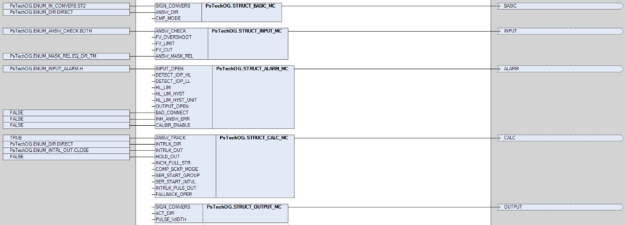 Для настройки алгоритма используется входная переменная CONFIG структурного типа STRUCT_CONFIG_MC, входная переменная IYYY_CONFIG структурного типа STRUCT_CONFIG_PVI и входная переменная СYYY_CONFIG структурного типа STRUCT_CONFIG_MLD_SW.
