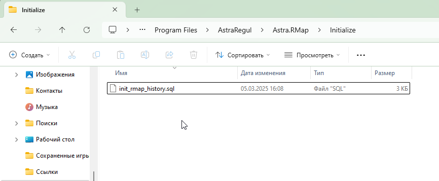 Откройте любым текстовым редактором файл скрипта init_rmap_history.sql, расположенный в каталоге установки Astra.RMap.C:\Program Files\AstraRegul\Astra.RMap\Initialize