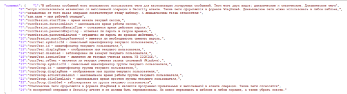 Файл astra.security.agent.json хранит тексты сообщений, которые можно редактировать. При формировании текста сообщения можно использовать теги. Теги описаны в начале файла.