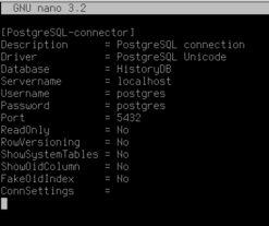 3. Создайте подключение к базе данных. Откройте файл odbc.ini с помощью команды :