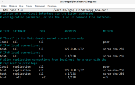 4. Откройте файл pg_hba.conf с помощью команды: