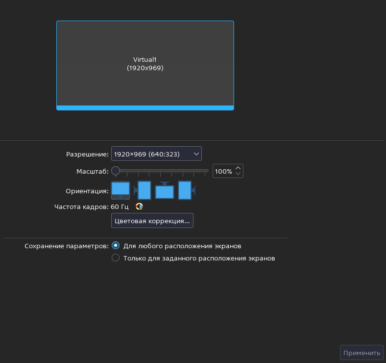3. В окне "Настройки экранов" выберите масштаб "100%" и нажмите кнопку "Применить".