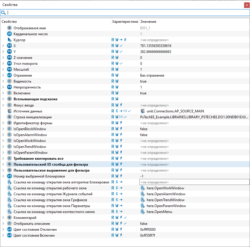 Для настройки мнемосимвола задайте следующие поля: