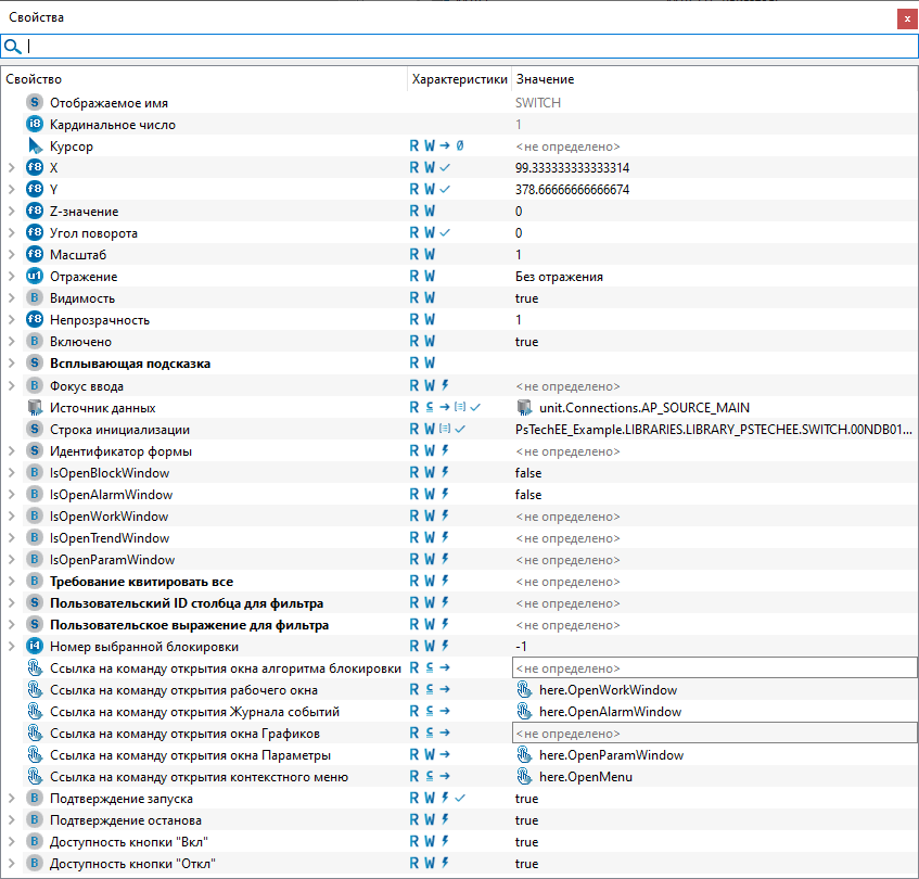 Для настройки мнемосимвола задайте следующие поля: