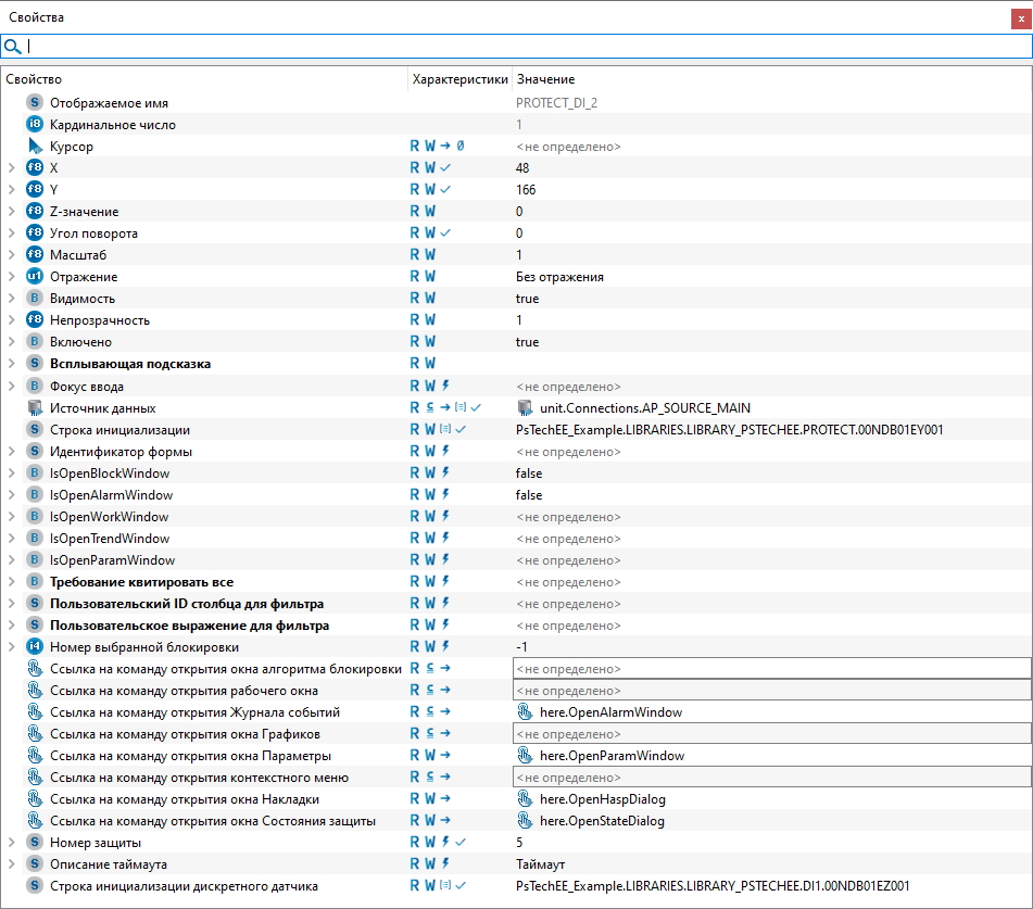 Путь до дискретного датчика (экземпляра функционального блока) в конфигурации проекта (свойство принадлежит технологической защите с дискретным датчиком).