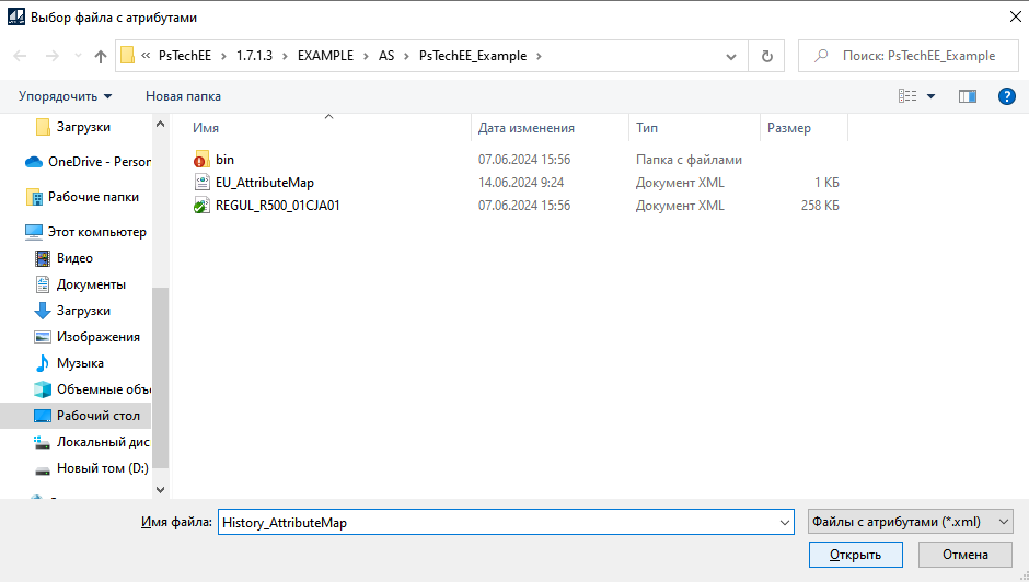 на элементе "AttributeMap". Откроется окно выбора файла, введите название файла и нажмите кнопку "Открыть". Будет создан новый Xml-файл с атрибутами.
