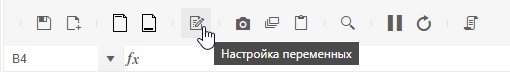Чтобы настроить переменные в шаблоне, нажмите кнопку "Настройка переменных" на вкладке Отчет.