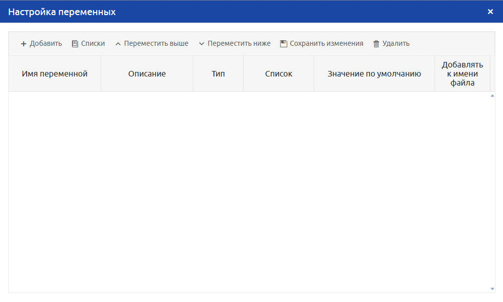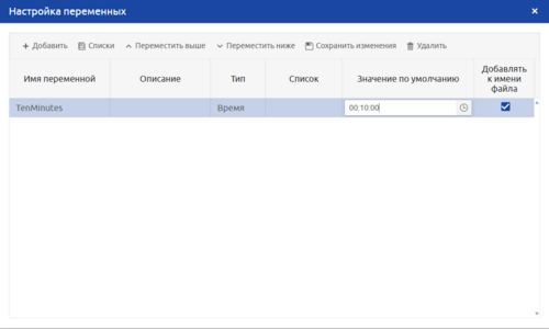Чтобы переместить строку переменных на позицию выше/ниже, нажмите кнопку Переместить выше или Переместить ниже соответственно.
