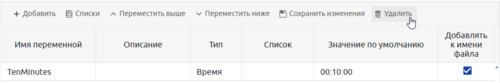 Чтобы удалить переменную, в строке описания переменной нажмите кнопку Удалить.