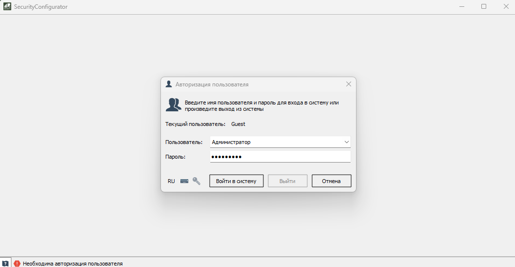 Откройте приложение Astra.HMI.SecurityConfigurator и выполните вход в аккаунт администратора.