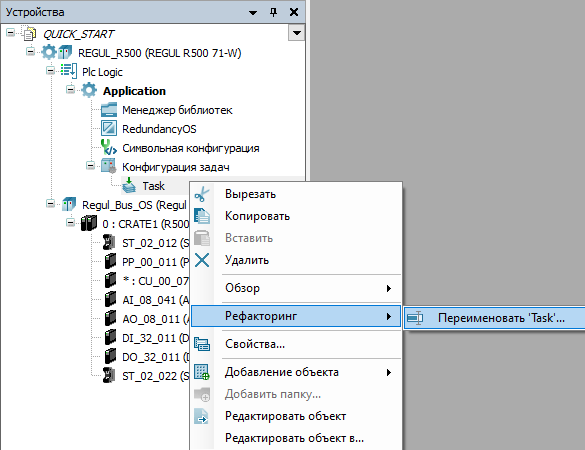 Задайте имя "TASK_MAIN" и нажмите кнопку "ОК". Подтвердите переименовывание объекта.