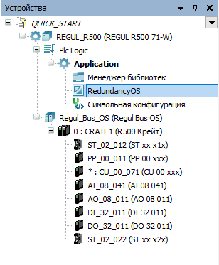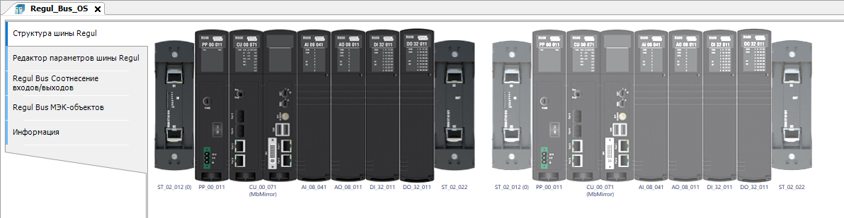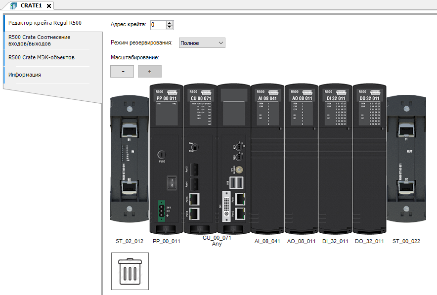 4. Перейдите в редактор шины "Regul_Bus_OS". При выборе режима резервирования "Полное" отобразится крейт для резервирования.