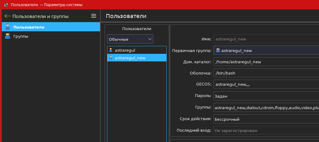 7. Откройте раздел "Пользователи и группы" и введите пароль администратора.