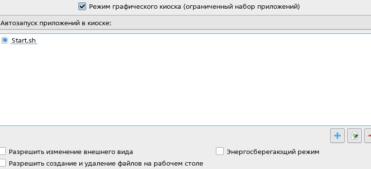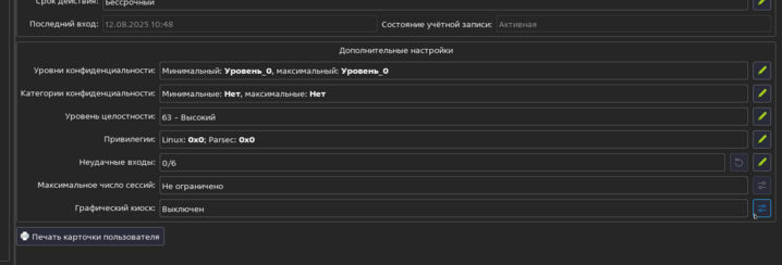 9. Выберите пользователя, у которого необходимо использовать киоск. Нажмите кнопку "Настройки" у поля "Графический киоск".