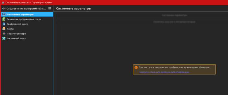2. Откройте раздел "Ограничение программной среды" и введите пароль администратора.