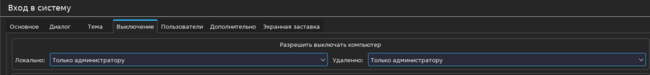 5. Нажмите на кнопку с шестеренкой у флага "Блокировка выключения/перезагрузки ПК для пользователей", подтвердите сохранение. В открывшемся окне перейдите на вкладку "Выключение" и выберите: