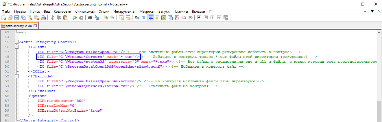 4. Назначьте атрибуту IC file тега <ICList> значение, являющееся полным путем к контролируемой папке.