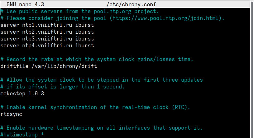 sudo nano /etc/chrony.conf