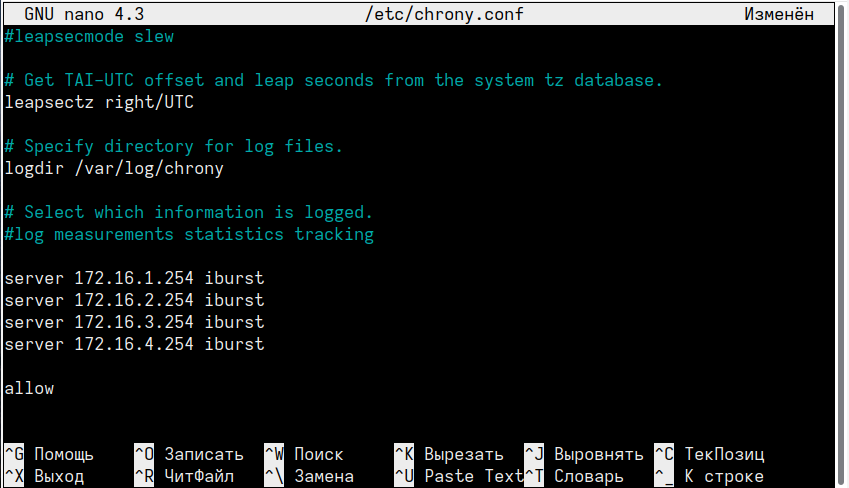 5. Добавьте в конец файла следующую строку, для использования службы в качестве NTP сервера: