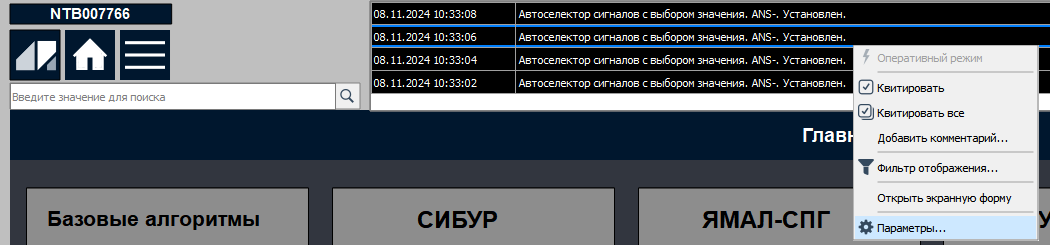 2. Кликните правой кнопкой мыши по активному событию в журнале ПСО и из выпадающего списка выберите команду "Параметры". Аналогичным образом можно открыть окно параметров для общего журнала событий.