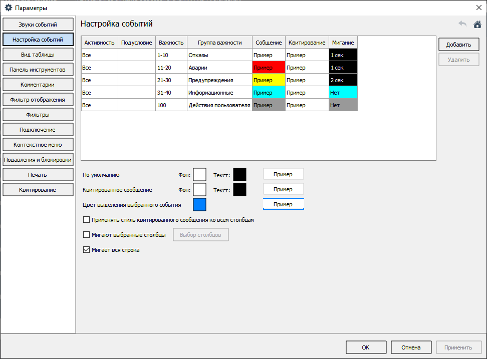 Подробную информацию по настройке параметров компонента Astra.HMI.Alarms можно посмотреть в документации "Аналитика технологического процесса. Руководство пользователя".