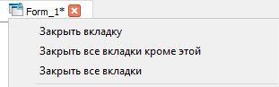 Чтобы завершить просмотр или редактирование объектов, типов или экранных форм, вызовите контекстное меню редактируемой вкладки и выберите нужную команду.