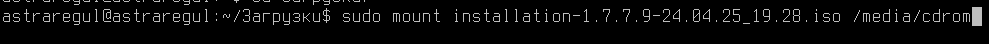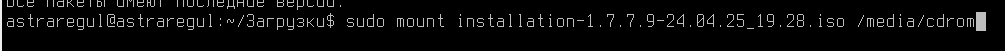 5. Перейдите в каталог с образом ОС и смонтируйте его в каталог "/media/cdrom", выполнив команду: