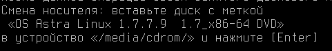 11. При появлении надписи "Смена носителя" в новом терминале выполните команду: