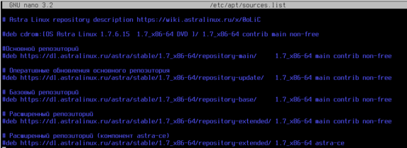 2. Откройте файл со списком ссылок на репозитории, выполнив команду: