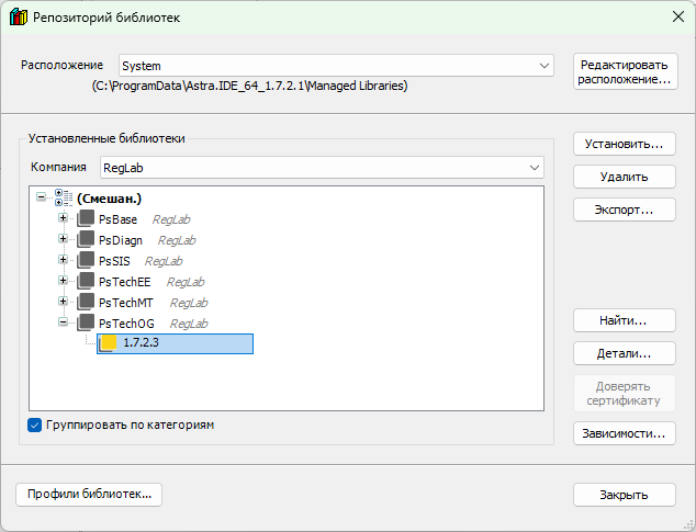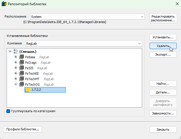 Чтобы обновить версию библиотеки PsTechOG в проекте Astra.IDE, выполните следующие действия: