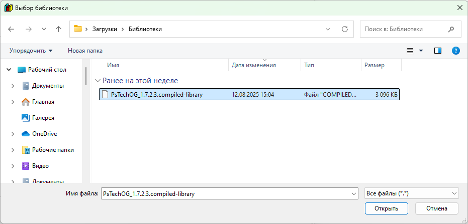4. Установите новую версию библиотеки в Astra.IDE, выбрав кнопку "Установить". В открывшемся окне укажите путь до файла библиотеки и нажмите кнопку "Открыть".