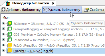 6. Перейдите в менеджер библиотек и удалите старую версию библиотеки из проекта при помощи кнопки "Удалить библиотеку".