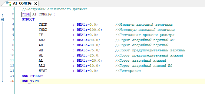 4. В редакторе структурной переменной "AI_CONFIG" объявите настроечные переменные.