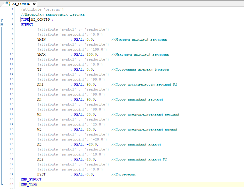 Настроечные параметры для аналогового датчика можно представить в виде структурной переменной.
